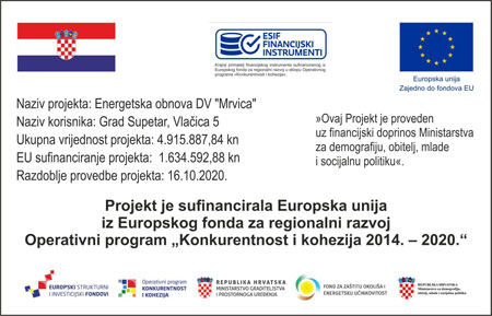 Počeli su radovi na energetskoj obnovi vrtića "Mrvica" u Supetru. Projekt vrijedan 7 mil kuna sufinaciran je iz tri izvora financiranja, Ministarstvo demografije obitelji, mlade i socijalnu politiku, EU sredstvima te kreditom HBOR-a.